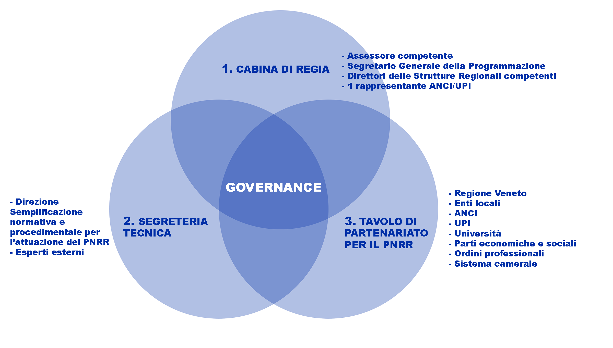 Nell’ambito del Piano è stata istituita una Cabina di regia quale organismo tecnico a partecipazione mista (Regione del Veneto, ANCI e UPI Veneto) con il compito, fra l’altro, di attivare canali di ascolto degli stakeholder del territorio ed in particolare delle Associazioni di rappresentanza del mondo economico e sociale.